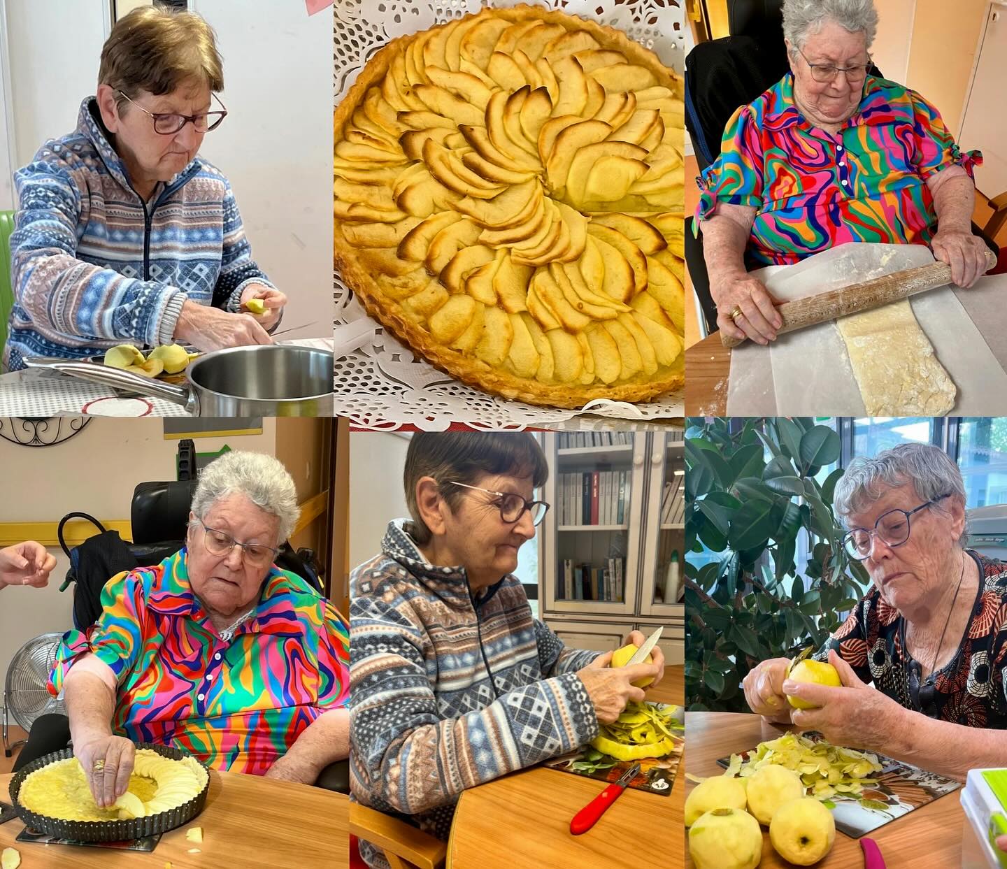 Nos résidents se sont retroussés les manches pour préparer une tarte 100% maison : pâte feuilletée, compote et décoration soignée!