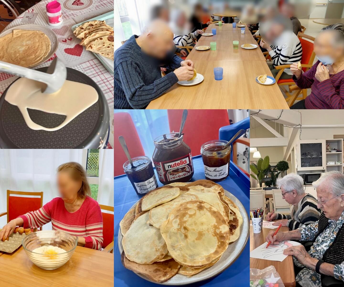 ? Côté EHPAD, après avoir préparé la pâte dès le matin, nos résidents ont enchaîné l’après-midi avec la cuisson des crêpes, une partie de belote animée et un atelier manuel pour préparer la future décoration.